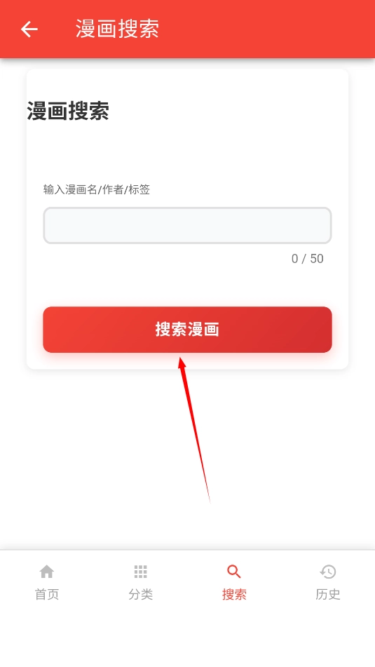 2、输入自己想要看的漫画进行搜索即可