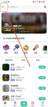 1、打开草方块社区软件,点击登录