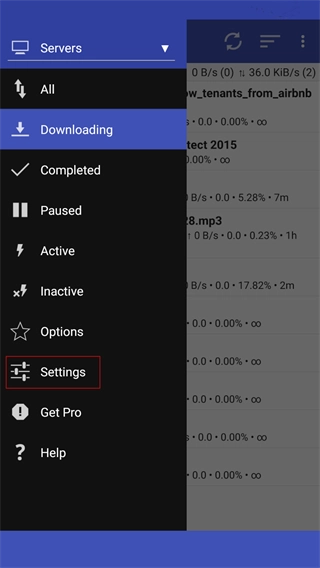 要开始使用该应用程序,请从左侧菜单中选择“设置”来设置 qBittorrent 服务器的设置和帐户,如下所示: