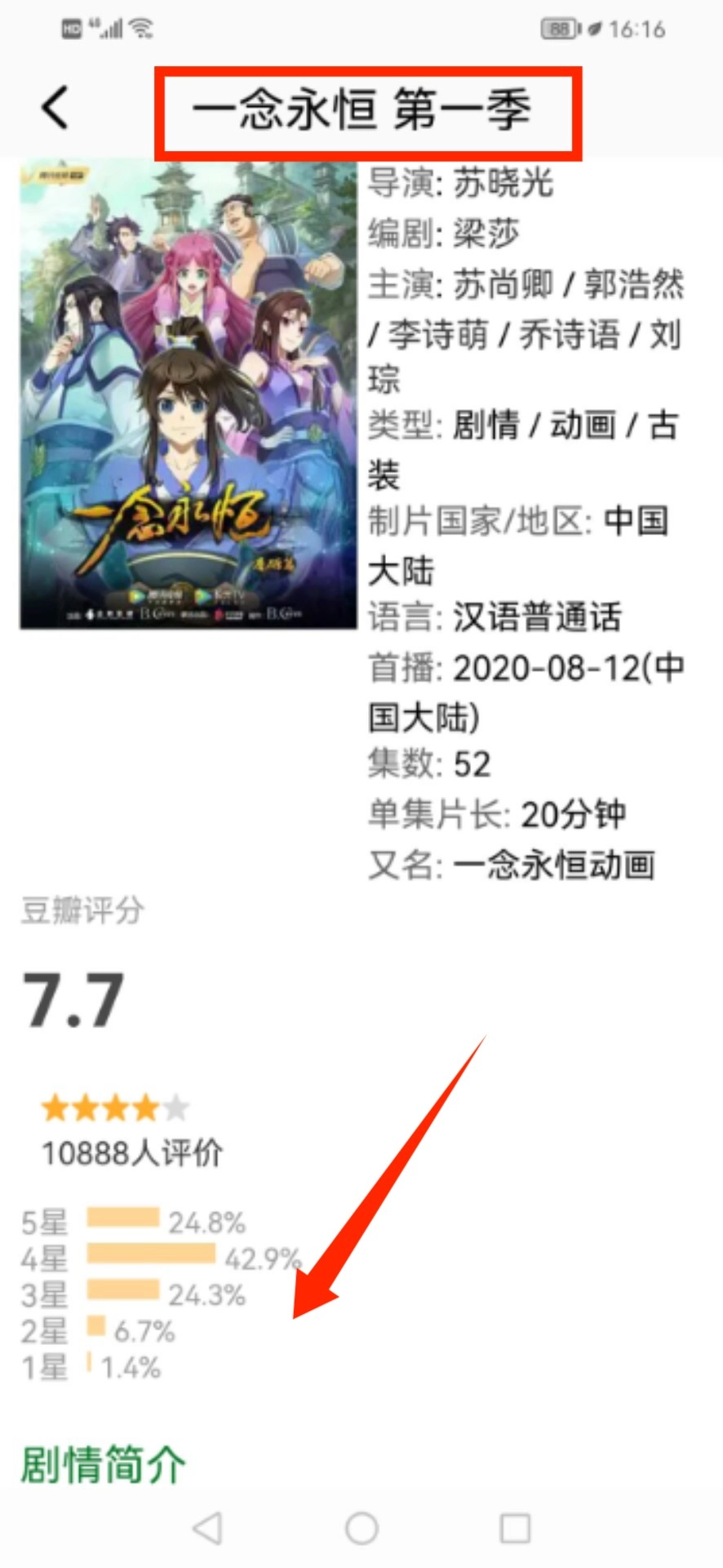 3、进入该动画详情页,可查阅制作团队、配音阵容、用户评分等详细信息。